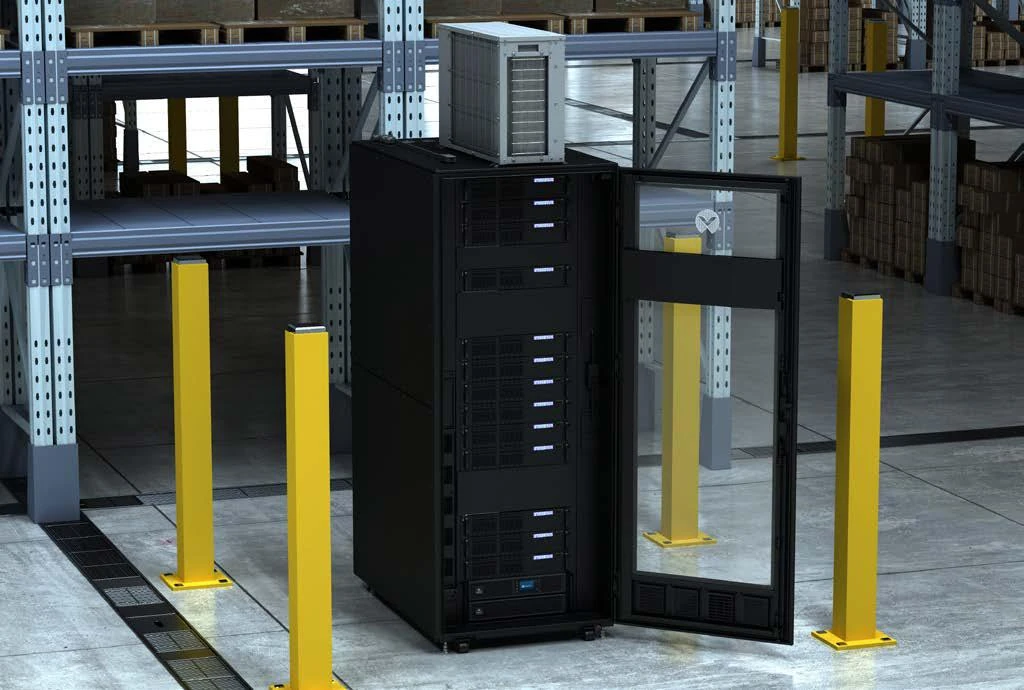 Zorlu sahalar için IP54 korumalı ve 7 kW soğutmalı, hepsi bir arada “tak-çalıştır” mikro veri merkezi çözümü.