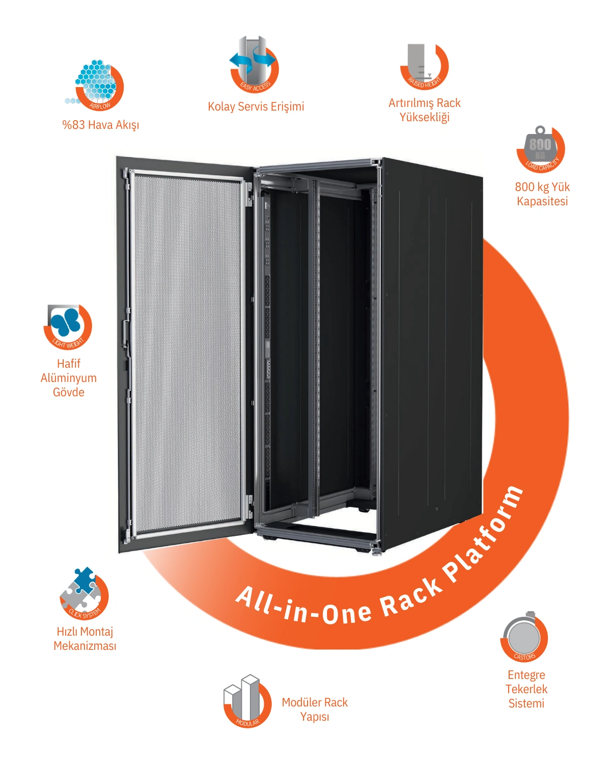 Modüler yapısı sayesinde rack bileşenleri ve aksesuarlar ihtiyaçlara göre yapılandırılabilir. Alüminyum gövde yapısı rack ağırlığını azaltırken yükseltilmiş zemin yükünü düşürür ve kurulumu kolaylaştırır.